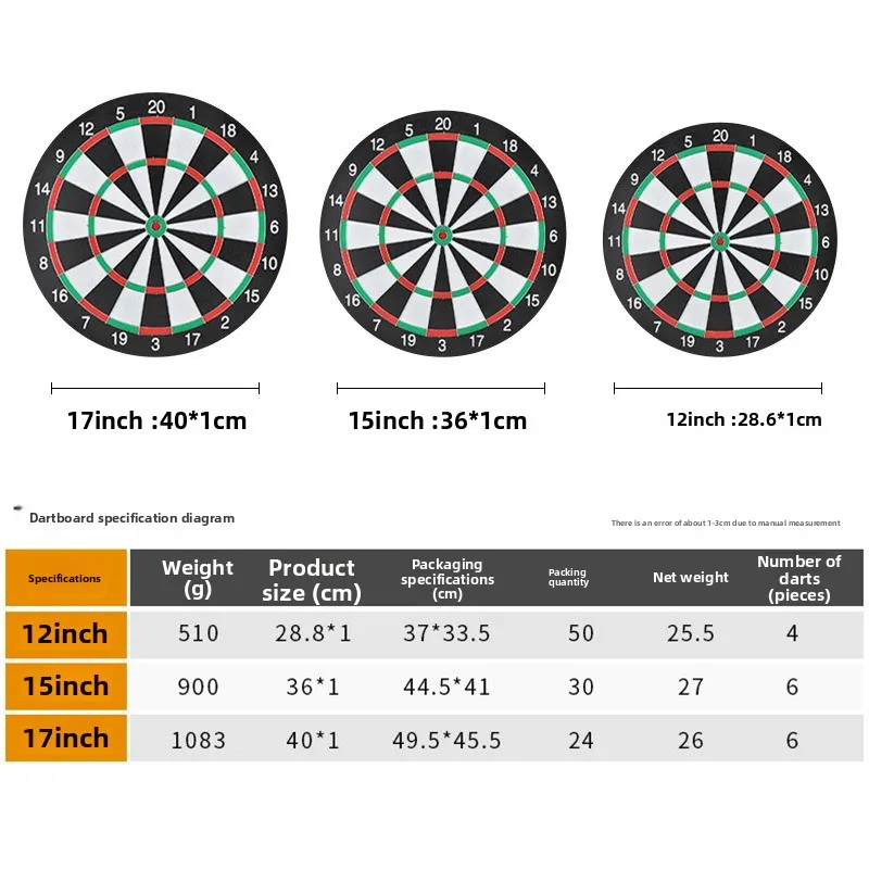 Welcome to Luxe Living Supply. Enjoy hours of fun and friendly competition with this double-sided dart board game set, designed for versatile play and easy setup. Featuring both 12-inch and 15-inch dart targets, it offers dual-use gameplay for beginners and experienced players alike. The wall-mounted design makes installation simple, while the included darts ensure you can start playing right away. Perfect for game rooms, living spaces, or recreational areas, this dart board set brings entertainment, skill-building, and excitement to any environment.