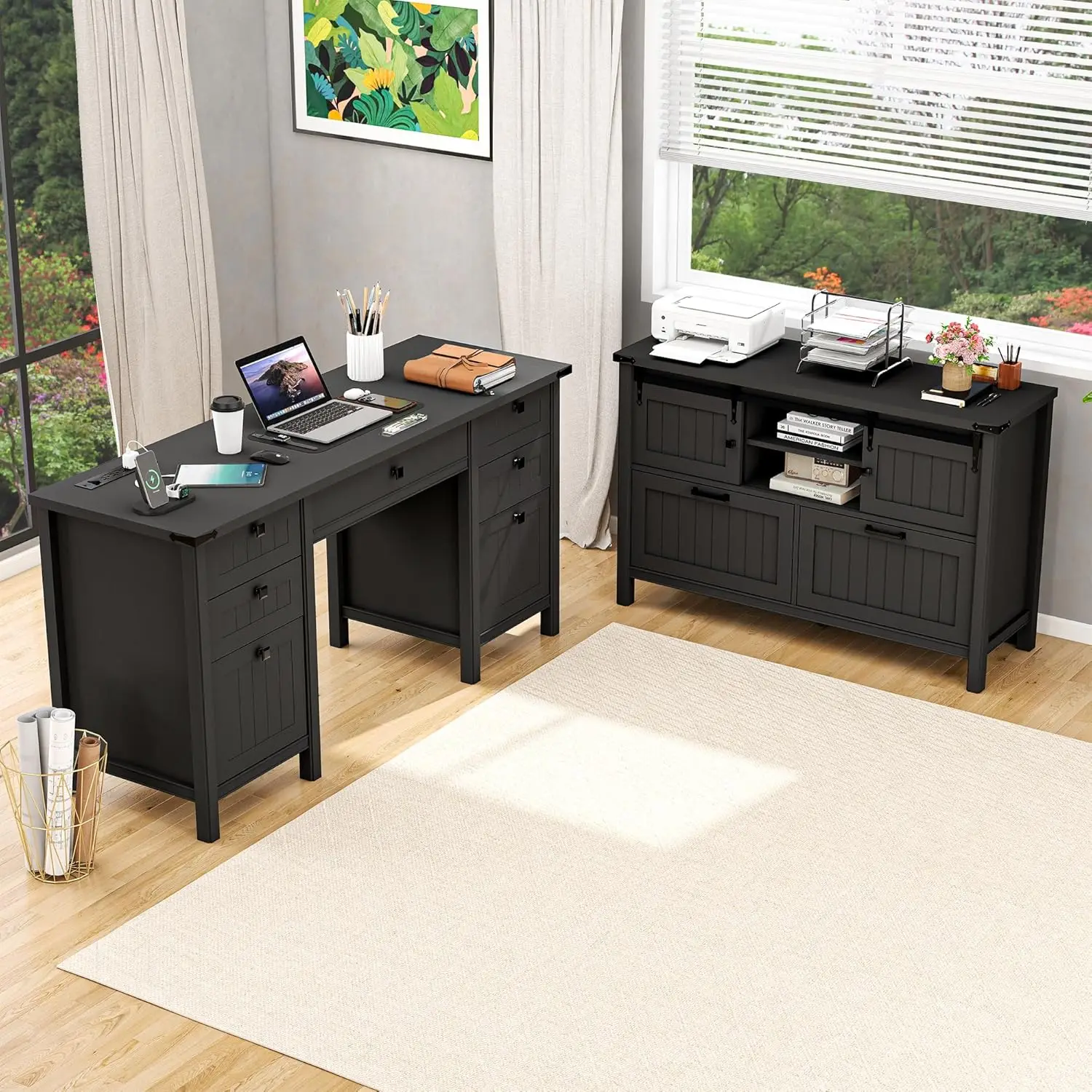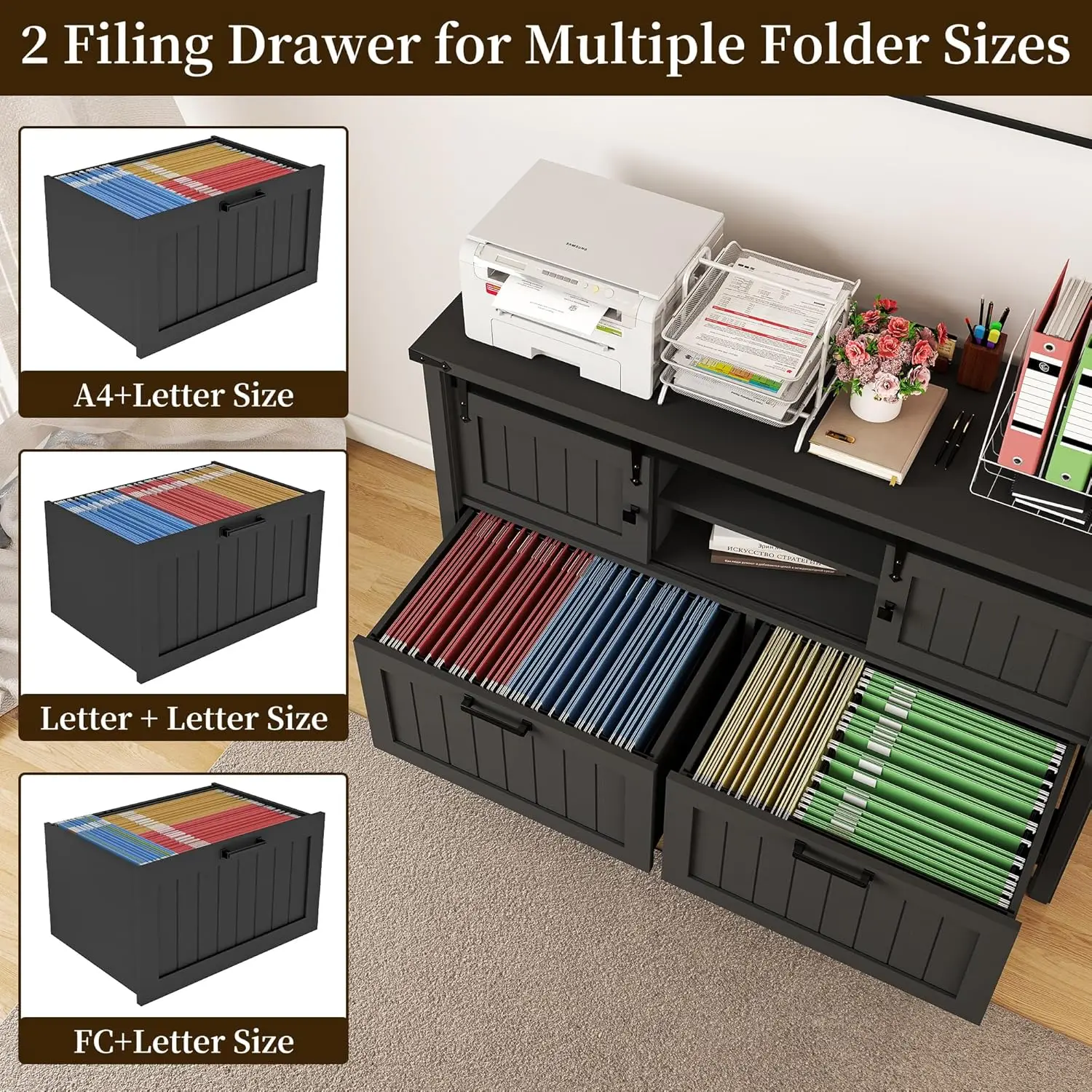 Welcome to Luxe Living Supply. Organize your workspace with this farmhouse-style 2-drawer lateral file cabinet, designed for both functionality and modern convenience. Featuring spacious drawers for documents and office essentials, it helps keep your workspace neat and efficient. The built-in power outlets add extra convenience for charging devices and powering office equipment, while the additional storage shelf provides space for books, décor, or supplies. Blending rustic charm with practical design, this cabinet is perfect for home offices, studies, or workspaces that value both style and organization.