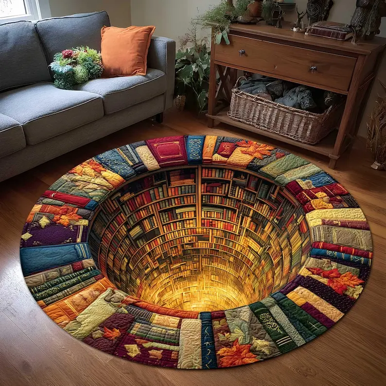 Welcome to Luxe Living Supply. Add a playful and creative touch to your space with this library-themed round doormat, perfect for book lovers and reading enthusiasts. Featuring a vibrant 2D-printed “book hole” design, it creates a fun optical illusion that adds personality to any reading nook, entryway, or living area. The soft yet durable surface offers comfort underfoot, while the non-slip backing helps keep it securely in place. Ideal for adding charm and color to your home, this unique rug is both decorative and functional.